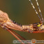 Mniejszy od samicy, nieco smuklejszy. Długość ciała 5,5-6 cm. Również uskrzydlony, jest znacznie lepszym lotnikiem niż samica, potrafi latać na niewielkie dystanse. Podstawowy kolor ciała podobnie jak u samicy to brąz, z którym kontrastują żółte oczy i rzędy czarnych chitynowych wyrostków. Odwłok zakończony charakterystycznym narządem kopulacyjnym. Czułki długie ok. 7 cm, czarno białe.