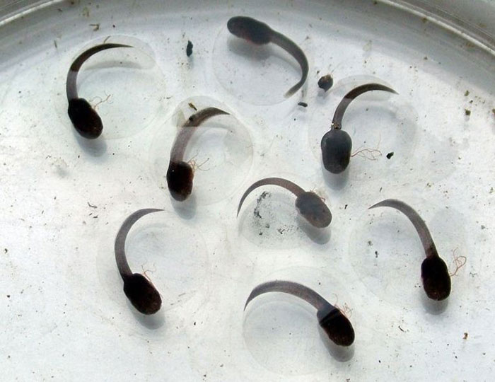 W dwunastym dniu kijanki zawierały jeszcze resztki żółtka, którym się odżywiały. Ich rozwój przebiegał bardzo szybko. Z dnia na dzień były coraz większe