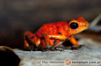 Fot. 3 Colostethus nubicola – kijanka i budowa aparatu gębowego (Walls, 1994) – Rozwój kijanek drzewołazów w warunkach terraryjnych - Trzecia grupa, zwłaszcza gatunek związany z Oophaga (Dendrobates) histrionicus, potrzebuje niezapłodnionych jaj (tzw. jaja troficzne) do skończenia rozwoju. Jest to jeden z najbardziej kolorowych gatunków i z najbardziej fascynującym rozwojem (Fot.4).