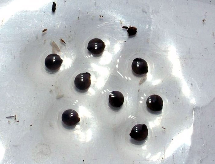 Jaja w pierwszej dobie po złożeniu są wielkości ok. 5 mm; wyraźnie widać podział na bieguny (Fot.6).