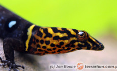 Minimalne wymiary dla dorosłego osobnika to 20×10 cm w podstawie, oraz wysokość większa niż długość osobnika. Gruba warstwa podłoża, najlepiej torfu lub włókna kokosowego zmieszanego z piaskiem i wermikulitem. Obowiązkowym elementem wystroju jest miseczka na wodę oraz kryjówka (kawałek kory, kamień, itp). Dodatkowo możemy dodać roślinki lub inne elementy wystroju wedle uznania. Jeżeli terrarium (bądź pojemnik) jest ciągle zaparowane i szybko pojawia się pleśń, najprawdopodobniej mamy za słaba wentylację. W przypadku plastikowego pojemnika, zwiększenie ilości dziurek powinno poprawić sytuację.