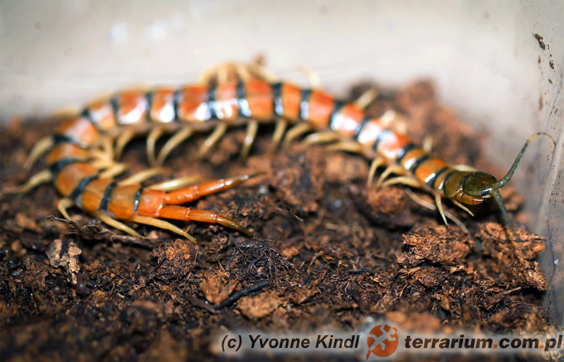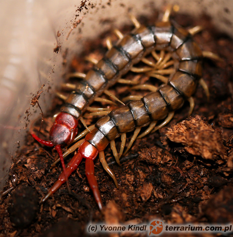 Odpowiednie duże terrarium czyli standardowo dwie-trzy długości ciała na jedną – dwie. Dla osobnika ~10cm terrarium powinno mieć wymiary w podstawie minimum 25×15. Wysokość większa od długości skolopendry. Dobre, szczelne i nieprzegryzalne przykrycie. Obowiązkowo poidełko na wodę oraz kryjówka, na przykład kawałek kory, odpowiednio wyprofilowany kamień. Jako podłoże używamy włókna kokosowego, bądź torfu, zmieszane z piaskiem oraz wermikulitem, w stosunku 1:1:1. Terrarium możemy udekorować żywymi bądź sztucznymi roślinkami.