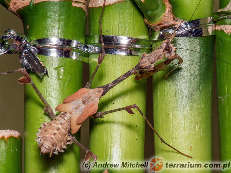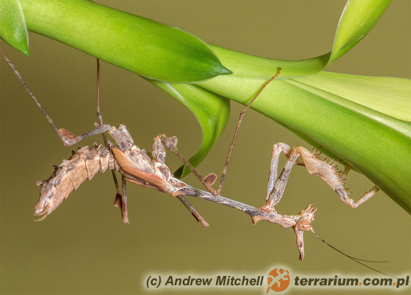 • Wskazówka: Spryskiwanie wodą co 2-3 dni. Zalecam utrzymywanie wyższej wilgotności u osobników młodych L1-L3, wyższe stadia oraz imago bardziej na sucho.