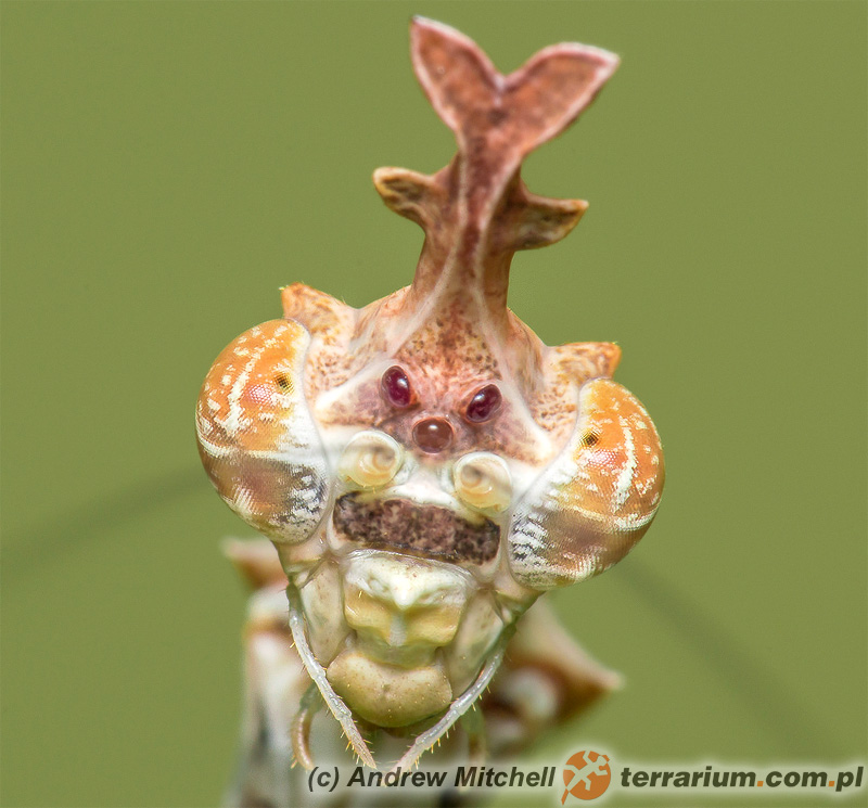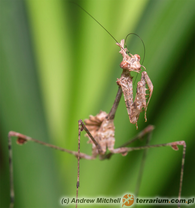 Modliszka dla bardziej zaawansowanych hodowców, o nietypowym wyglądzie i delikatnych długich odnóżach krocznych. Cechą charakterystyczną są także duże, wyraźne przyoczka oraz wyrostek na głowie.