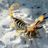 | Rhopalurus garridoi | Skorpion dorastający do 7 cm, o dość ciekawym jasnym ubarwieniu. Posiada łagodny jad, ból i inne dolegliwości znikają po kilku godzinach. Skorpion ten dobrze sprawdza się w pustynnych terrariach, trzeba jednak pamiętać o właściwej wilgotności, żeby go nie przesuszyć. Również u tego gatunku zachodzi zjawisko strydulacji. Jest to gatunek socjalny i dobrze sprawdza się w grupach. |