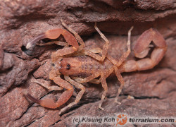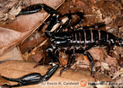Barwą dorosłych skorpionów jest jednolita czerń. Skorpion posiada niewielki ząb subacularny. Samica potrafi osiągnąć…