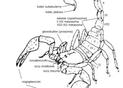 Skorpiony (Scorpiones) to rząd drapieżnych pajęczaków z podrzędu szczękoczułkowców, obejmujący ponad 2000 gatunków. Występują głównie w strefie tropikalnej, subtropikalnej oraz cieplejszej części klimatu umiarkowanego, preferując zróżnicowane środowiska od pustyń, przez lasy deszczowe, aż po góry do 5500 m n.p.m. Ciało składa się z głowotułowia i segmentowanego odwłoka zakończonego kolcem jadowym (telsonem). Samice są żyworodne i opiekują się potomstwem do pierwszej wylinki. Jad większości gatunków nie stanowi zagrożenia dla ludzi, choć niektóre, jak Leiurus quinquestriatus, są bardzo jadowite. W Polsce nie występują naturalnie, ale bywają hodowane w terrariach.