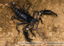 Pandinus imperator - skorpion cesarski (Koch, 1841) to najczęściej spotykany w domowych terrariach gatunek…