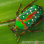 Pochodząca z Zairu Stephanorrhina guttata jest bardzo atrakcyjnie wyglądającym chrząszczem. Jako imago osiąga od 2,5 do 5,5 cm. Żyje średnio 4 miesiące, a rozwój larwy trwa 6 miesięcy. Długość życia larw i imago zależy od temperatury. Jeśli temperatura jest niższa to rozwój owada się wydłuża, a jego aktywność maleje. Ten masywny chrząszcz posiada owalny kształt. Jego ubarwienie jest bardzo ładne, przeważają barwy zielone, a na krawędziach skrzydeł i ciała znajdują się pomarańczowe akcenty. Na powierzchni skrzydeł możemy dostrzec małe szare kropeczki, które atrakcyjnie wyglądają. Z wiekiem kolory owada zaczynają ciemnieć.