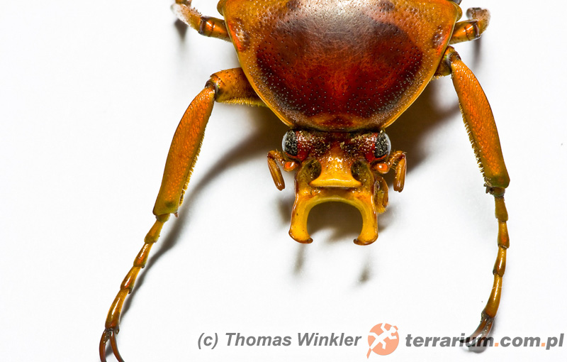 Na podłożu można ułożyć kawałki kory, zapobiegające nadmiernej utracie wilgotności. Powierzchnię nad podłożem gospodarujemy wedle uznania. Aby zwiększyć powierzchnię życiową imago, można skorzystać np. z różnego rodzaju korzeni. Są to chrząszcze bardzo aktywne, często podejmujące próbę lotu, a więc podczas wszelkich operacji w terrarium należy być ostrożnym, aby zapobiec ewentualnej ucieczce chrząszcza.
