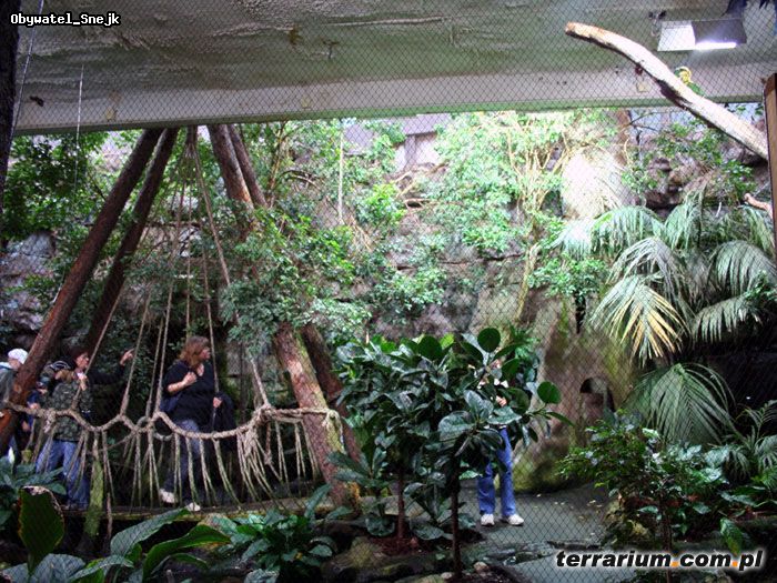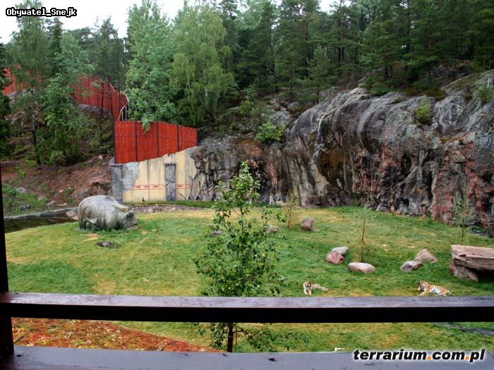 Czapki z głów. Stańmy na baczność i oddajmy hołd Szwedom. Taki ogród zoologiczny to absolutny hit. Właściwie to recenzja z mojej wizyty w nim powinna się skończyć na powyższych stwierdzeniach. Jednak postaram się jeszcze dodatkowo zachęcić was do jego odwiedzenia. Ponad 500.000 turystów rocznie może nie robi wrażenia, ale jeśli przemyśleć położenie Kolmarden to sytuacja zmienia się diametralnie. Ogród położony jest w środkowo-wschodniej Szwecji, około 56 km od Norrkoping i około 300 km od Sztokholmu. Dojazd jest bardzo wygodny i świetnie oznaczony. Całodzienny parking kosztuje około 15 PLN. Na terenie całego kompleksu ogrodu znajduje się hotel(!!) oraz kilka restauracji i barów fastfood. Jest to, hmmm, spokojna i cicha okolica, z dala od zgiełku dużych miast…i czegokolwiek. Norrkoping to robotnicze miasteczko, w związku z czym turystów nie ma tam zbyt wielu. W związku z tym pół miliona turystów rocznie jest bardzo dobrym wynikiem. Kolmarden nie ma zbyt dużej liczby gatunków, czy osobników. Tych ostatnich jest ledwo ponad 740, czyli liczby mniejsze od naszych ogrodów, ale… No właśnie, Kolmarden bazuje na przepięknych wybiegach, świetnie rozwiązanych klatkach i sprytnych rozwiązaniach dla zwierząt. Nie znajdziemy tam super-rzadkich gatunków czy tysiąca odmian antylopy. Wyjątkowość tego ogrodu polega na rozmieszczeniu zwierząt i warunkach jakie im zapewniono. Faktem jest również, że Kolmarden to drogie zoo; bilet obejmujący ogród, safari i terraria kosztuje około 200 PLN od osoby, jednak mam nadzieję, że wyjdziecie z takim samym przeświadczeniem, że było warto! Kilka przykładów; ogromny wybieg dla tygrysów bengalskich z potężnymi skałami, dużym (10-cio metrowym)wodospadem i fosą. Przy wybiegu mamy do dyspozycji tarasy widokowe na różnej wysokości oraz oszklone pomieszczenia wpuszczone w wybieg, z których możemy obserwować zwierzęta na wyciągnięcie ręki. Kiedy ja odwiedziłem Kolmarden, chwilowo niedostępny był autobus, wkopany do połowy wysokości, na środku wybiegu, do którego można wejść od spodu, korytarzem i przebywać między tygrysami, mając trawę na wybiegu na wysokości oczu! W innym miejscu mamy świetny wybieg dla panter śnieżnych z ogromną 30-to metrową skałą na której zamocowane są fragmenty pni drzew, całość z jednej strony jest okolona głębokim stawem a z drugiej skalistą równiną, wejście do wnętrza leży jest ładnie ukryte w ścianie wybiegu, praktycznie go nie widać. Na szczycie tej kamiennej góry umiejscowiono platformę dla kotów, dzięki czemu zadarłszy głowę do góry możemy oglądać je w całości. Dodatkowo mamy możliwość niejako wejścia na wybieg, schodami i podestem zawieszonymi nad stawem, nimi dochodzimy do platformy zadaszonej i oszklonej, gdzie na ścianach możemy pooglądać zdjęcia panter oraz co nieco poczytać o nich (większość ma opis w języku angielskim), a także posiedzieć na ławkach i po prostu patrzeć na to jak pantery sobie żyją na wybiegu. Duże wrażenie robi również rodzina goryli i szympansów, które z nimi sąsiadują. Obie rodziny mają do dyspozycji duże wybiegi z masą przedmiotów, które należą do…ludzi.Ubrania, buty, garnki, hamaki, huśtawki czy trampoliny wywołują ciarki na plecach, gdyż właśnie takie widoki uświadamiają mi ten 1% różnicy w sekwencji genomu naszego i szympansa!