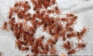 Podstawowym ubarwieniem tego ptasznika jest brąz. Tarczka grzbietowa ze złotym połyskiem. Jego odwłok jest…