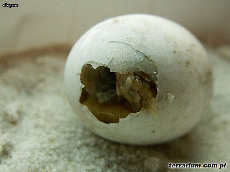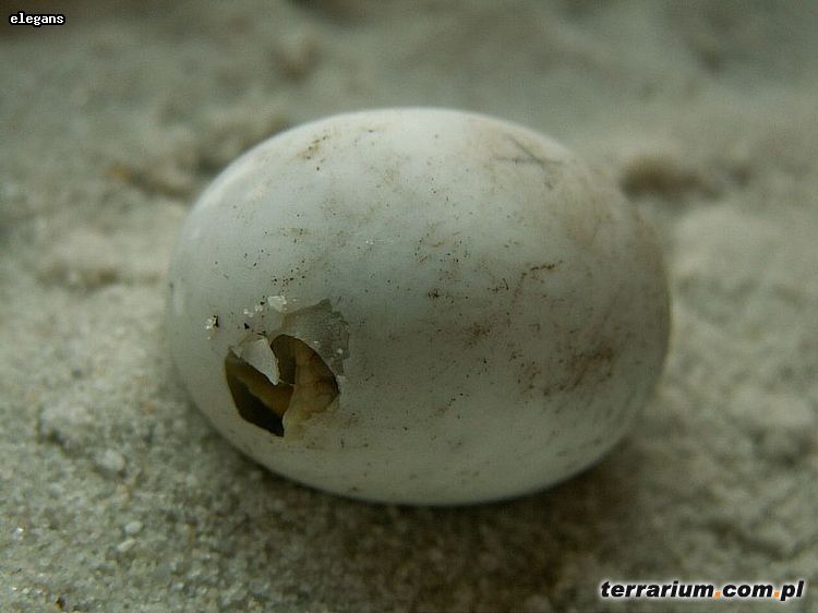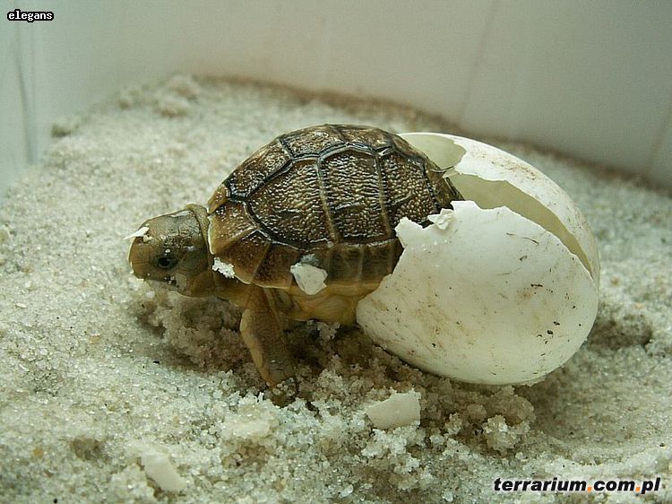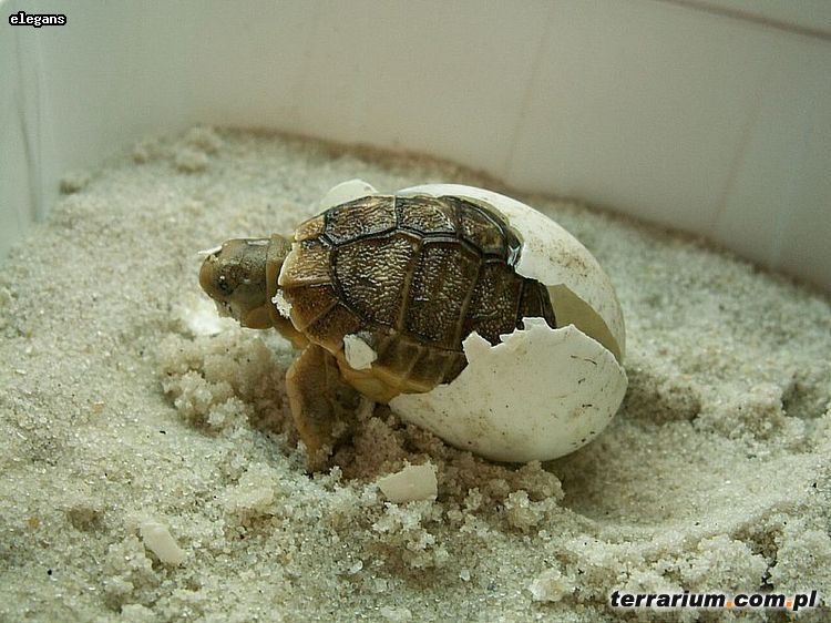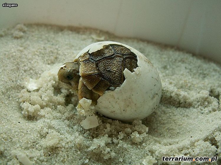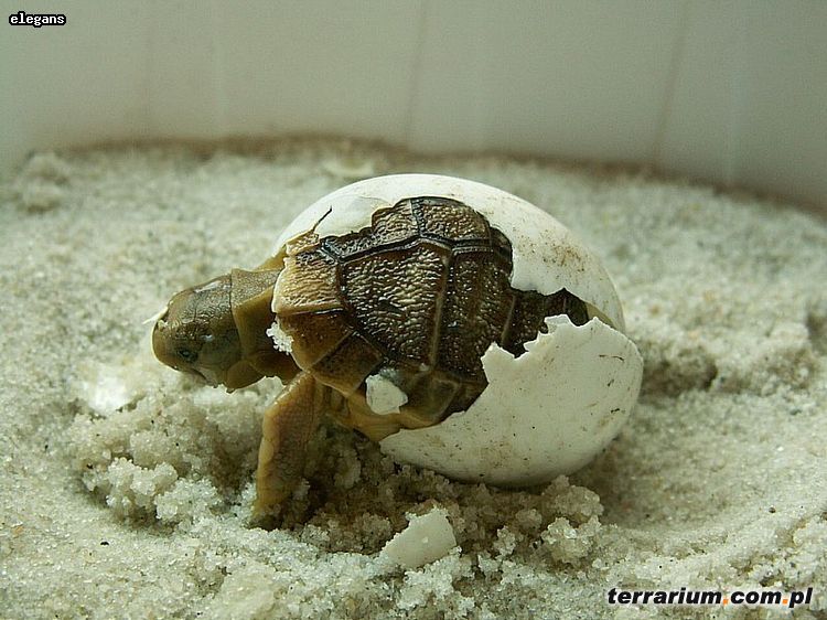 W zbiorniku należy zatem już wcześniej przygotować specjalną strefę, w której samice będą mogły bezproblemowo złożyć jaja. Wysypujemy ją delikatnie wilgotnym, przesianym piaskiem lub żwirkiem o bardzo drobnej granulacji (bez większych kamieni i innych elementów zagrażających jajom). Wyższa wilgotność podłoża zapobiega osuwaniu się substratu, co bardzo utrudniałoby drążenie komory lęgowej. Warstwa o grubości 10-15 cm w zupełności wystarczy. Całość „dekorujemy” trawami lub sianem (co znacznie zwiększa poczucie bezpieczeństwa i „intymności” żółwic) i ogrzewamy lampą punktową. Samice z reguły nie kopią bezpośrednio pod promiennikiem, lecz lokalizują gniazdo w obrębie jego działania. Kiedy wybiorą ostateczne miejsce, rozgrzebują je najpierw przednimi łapami. Potem proces, aż do całkowitego zakopania jaj, kontynuują kończynami tylnymi. Czynnikami świadczącymi o zbliżającym się lęgu są: podwyższenie apetytu i wzrost wagi żółwic (spowodowany przede wszystkim zwiększonym apetytem i rozwojem jaj w jajowodach). Samo składanie (od momentu wyboru miejsca do całkowitego zakamuflowania gniazda) trwa od 2 do 3 godzin. Samice znoszą od 1 do 3 jaj, rzadko 4. Głębokość gniazda wynosi zaledwie kilka centymetrów. Ze względu na znaczne straty energetyczne żółwic, należy im od razu zapewnić dostęp do wody i pokarmu. Po całkowitym zakończeniu procesu, jaja delikatnie wykopujemy i przenosimy do inkubatora typu suchego lub mokrego (nada się sprzęt zarówno profesjonalny, jak i „zrób to sam”). Inkubację prowadzimy w suchym piasku w temperaturze oscylującej w granicach 30ºC i wilgotności 65 – 75%. Dobowe amplitudy rzędu 3 – 4ºC nie wydają się wywierać negatywnego wpływu na rozwój zarodków. Istnieją dwie główne metody umieszczania jaj w substracie: