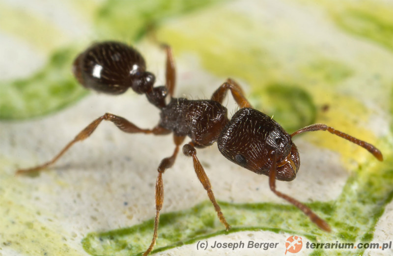 | Hodowla | Małe gabaryty powodują, że potrafi się przecisnąć przez naprawdę małe szczeliny w zabezpieczeniach. Swoje kolonie karmimy drobnymi owadami oraz małymi kropelkami miodu. |