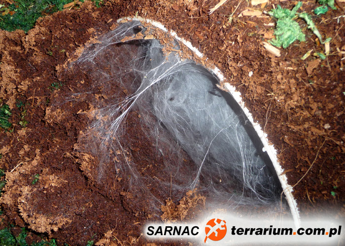 | Warunki w zbiorniku: | Plastikowy pojemnik o wymiarach 46/25/36cm (dł./wys./szer.) z 10-centymetrową warstwą włókna kokosowego, wilgotność i temperatura jak wyżej w opisie, po złożeniu kokonu wilgotność stopniowo obniżałem do 70-75%. | |