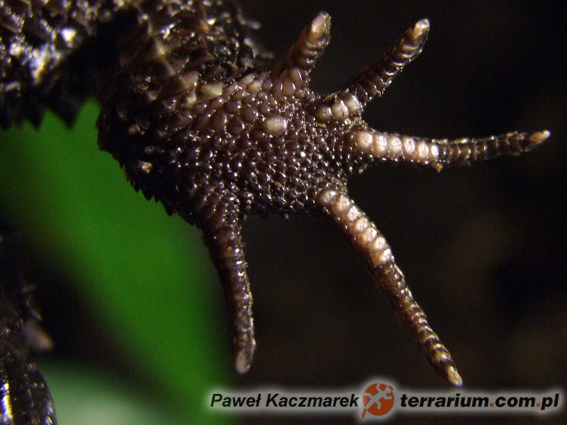 | UWAGI | Pory dłoniowe występują tylko u samców, natomiast gruczoły brzuszne są obecne u obu płci. Samica nie składa jaj, a wydaje na świat żywe młode (jedno w danym czasie)! Dodatkowo lewy jajnik jest skrajnie zredukowany lub nie występuje wcale. |