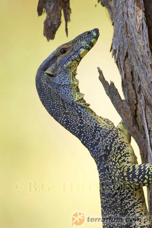 Jest to w dużej mierze jaszczurka nadrzewna – mimo osiąganych rozmiarów są wspaniałymi wspinaczami, doskonale wyposażonymi przez naturę w mocne, ostre i zakrzywione pazury umożliwiające im poruszanie się wśród koron drzew i to z ogromną zwinnością.