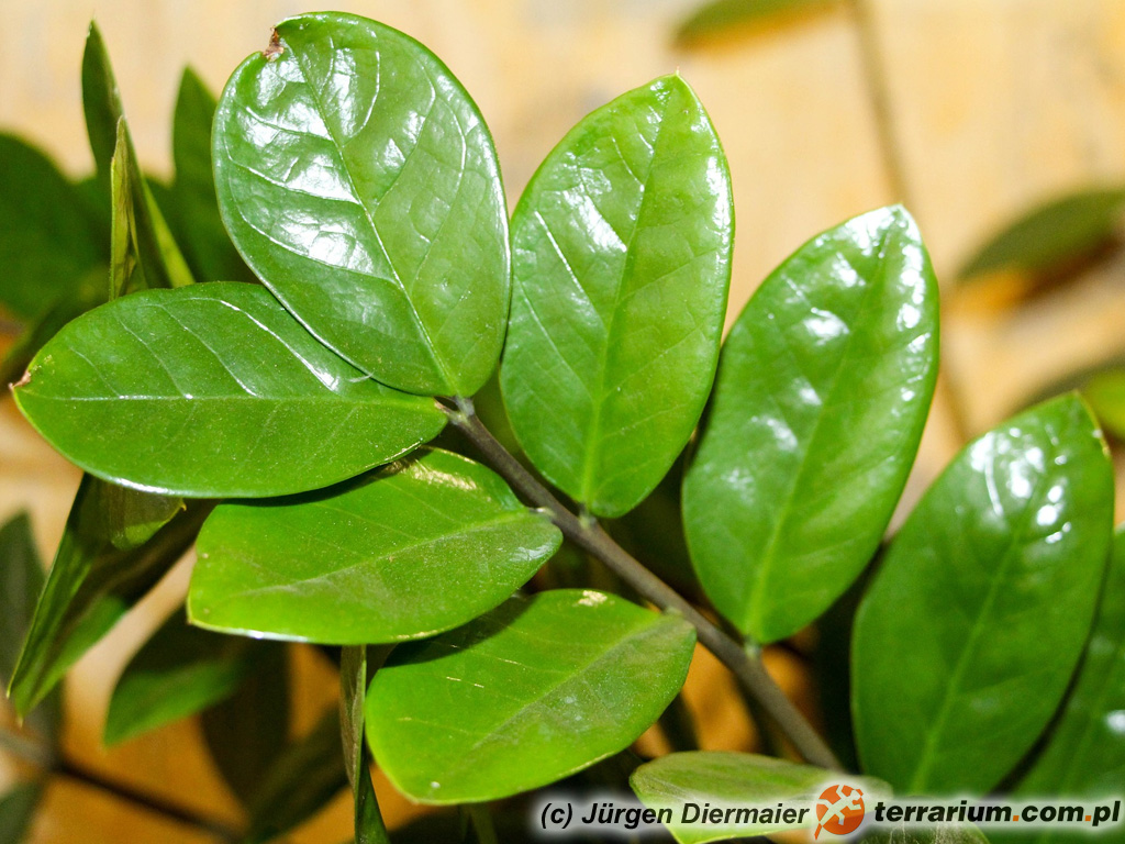 Podlewać tak, aby ziemia zawsze była lekko wilgotna ale nie mokra, zamiokulkas znosi przesuszenie dzięki wodzie zawartej w bulwach, od czasu do czasu zraszamy liście aby pozbyć się kurzu. Nawóz stosujemy co 3 tygodnie.