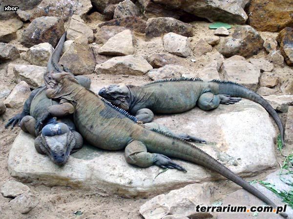 W ogromnym terrarium żyła także duża grupa Legwanów Nosorogich (Cyclura cornuta), których zdjęcia także możecie podziwiać. Legwany te wygrzewały się leżąc w grupach na kamieniach. Nie były to pięknie ubarwione zwierzęta, ale ich rozmiar robił wrażenie. Mierzyły myślę one około 1,5m.